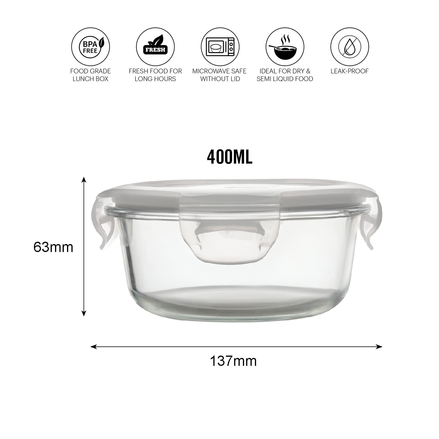 • Crystal Clear Visibility: The crystal-clear glass design not only lets you effortlessly identify your stored meals but also showcases their appetizing appeal. An excellent choice for home, office, or on-the-go usage.